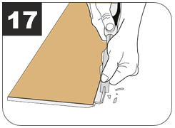 Отрежьте левый край так, чтобы он соответствовал размеру помещения с учетом зазора для расширения 8 мм.